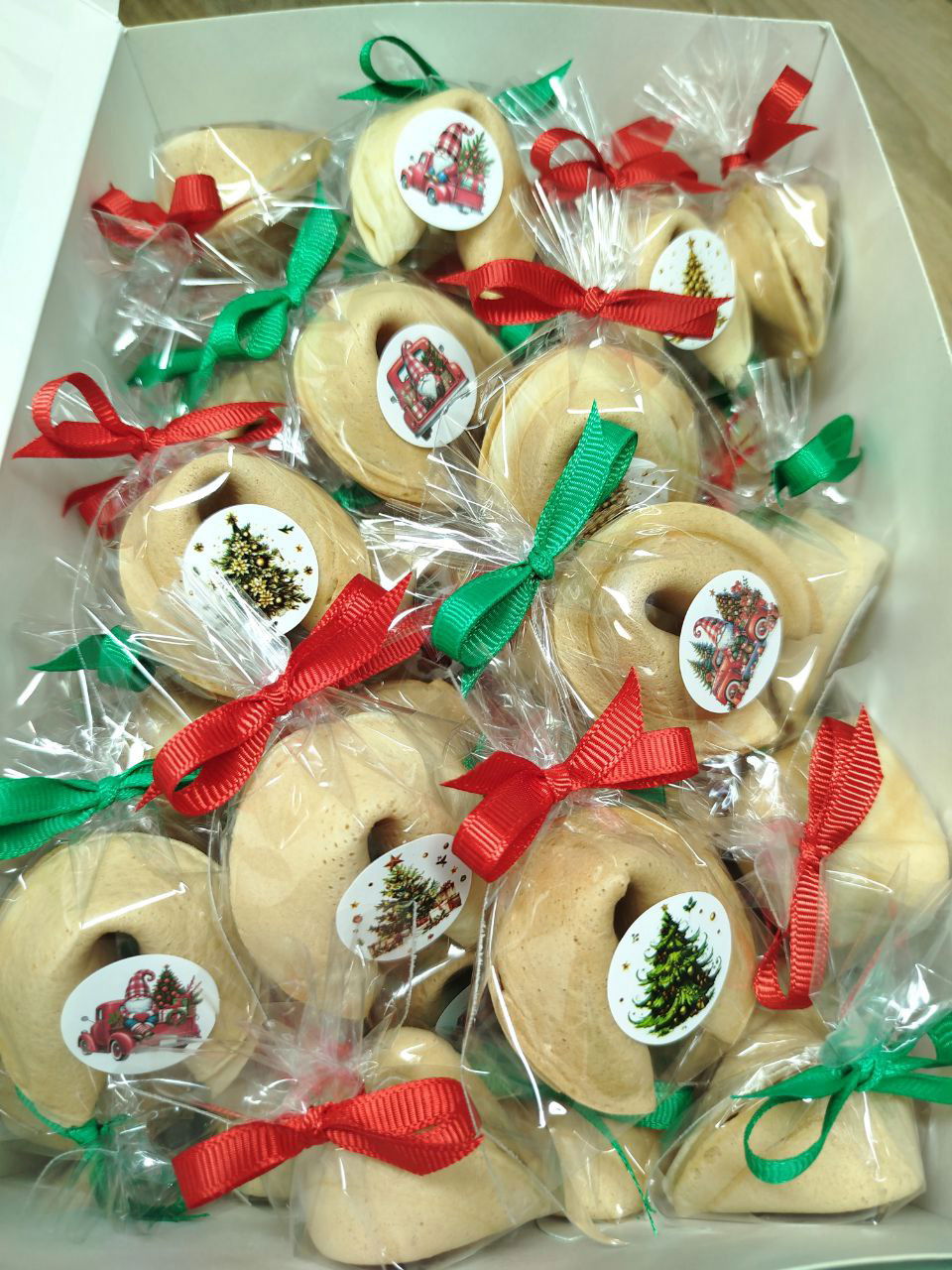 Подарункова коробка печива з Новорічними передбаченнями, 25шт.